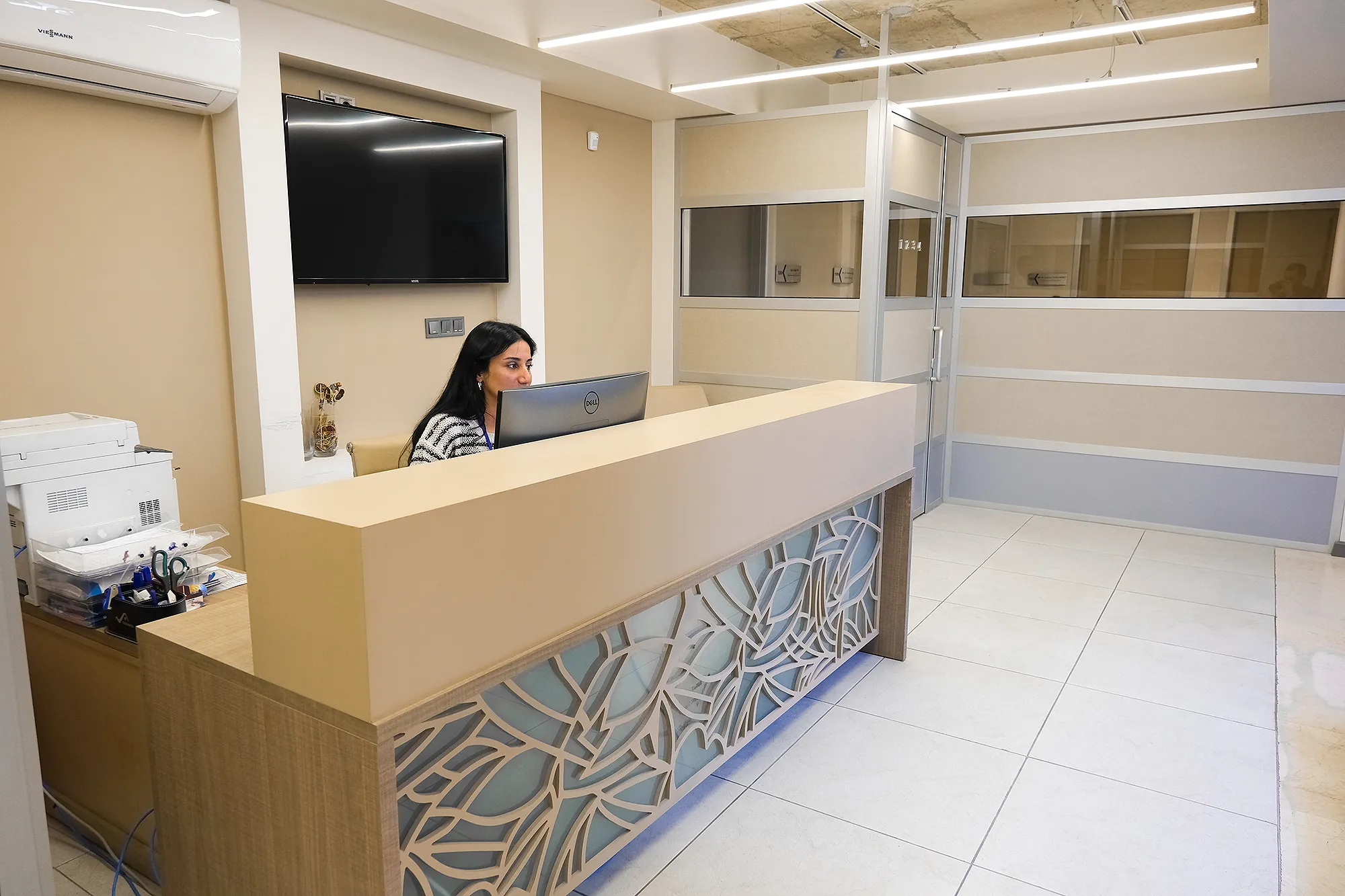 Lavabo, mobilya, çalışma masası, misafir kanepesi ve koltukları, sehpalar, IP telefon, muayene masası, 27" monitör gibi seçeneklere sahip konforlu muayenehaneler.